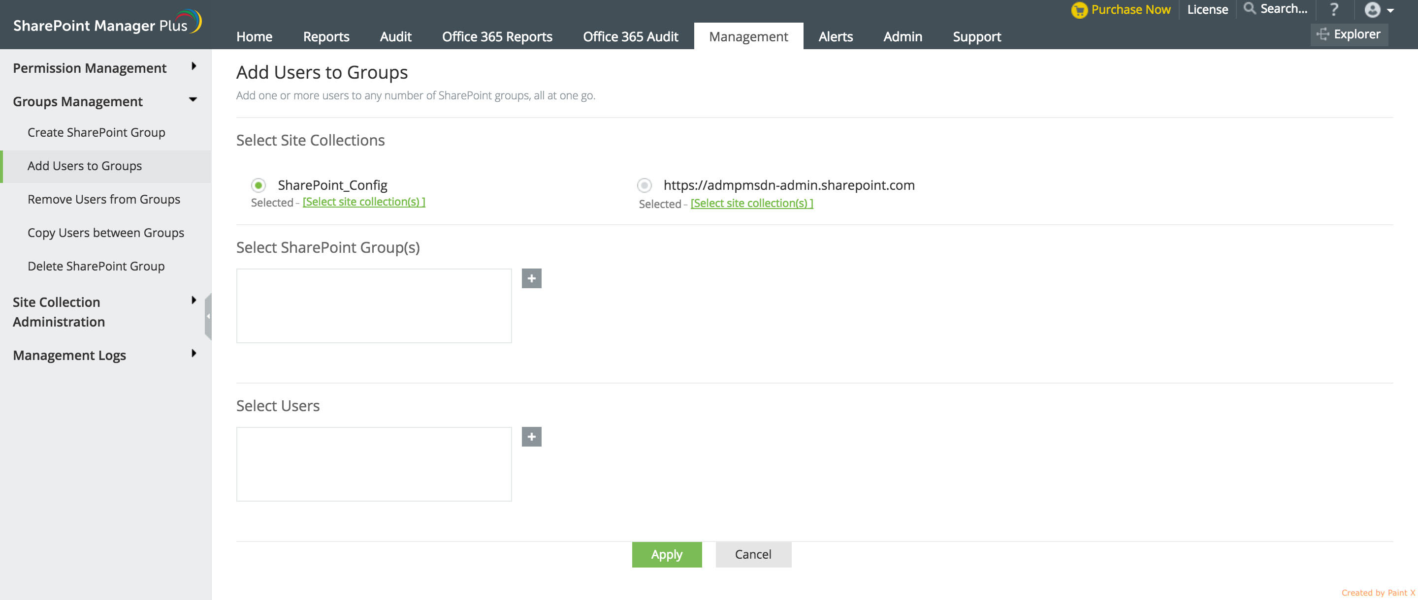轻松创建或删除SharePoint组。还可在站点集合中对一个或多个组添加或移除用户。而且,它的功能不仅限于此,您还可在站点集合中的若干组之间复制或移动用户。