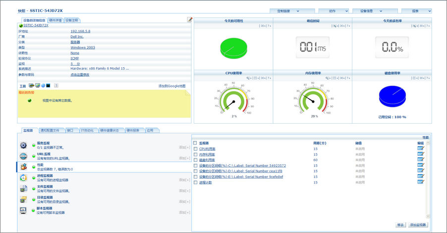 随着信息中心的迅猛发展,IT核心业务系统采用了Dell、HP等硬件服务器设备,服务器磁盘都是采用Raid5配置了磁盘冗余,但是当这些磁盘发生损坏的时候,系统无法检测,直到这台机器系统无法启动时,人工修理机器时才能发现这些问题。另外信息中心还有不同品牌的网络设备,包括交换机、路由器、防火墙等,以及数据库,Websphere、Tomcat等应用服务器。而目前信息中心缺少对这些资源对象的统一监控平台。